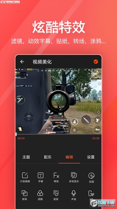 1、提供专业电影后期大师悉心调制的多款滤镜,轻松搭配各种场景,让影片一秒高大上