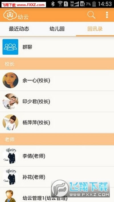 3、园讯录:家长、老师、园长可以即时沟通,家园共育更方便;