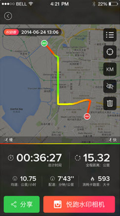 跑完步仅仅分享数据当然不能够!沿途拍照一键制作成高逼格的水印照片,傲娇地分享起来,让众亲友跪安吧!