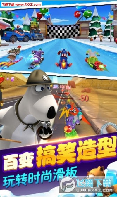 游戏画风Q萌可爱,精心设计的百变造型令人忍俊不禁。蠢萌的倒霉熊化身队长熊、夏威夷熊、侠盗熊和斯巴达熊,各路豪杰联手出击,一定会让你大展“熊”风!每种角色都有独一无二的专属技能,一秒变身超能英雄!还有造型各异的炫酷滑板,精美的画风让你大饱眼福。