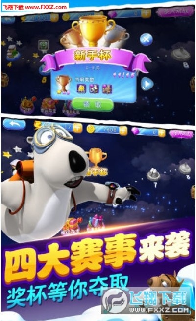 游戏采用锦标赛关卡流程设定,从新手杯一直争夺到大师杯,配合超带感的剧情,玩家的目标是战胜库拉卡,成为最终冠军!关卡共分为四种模式,能量赛、竞速赛、收集赛、时间赛,游戏中还有精彩不断的各类活动,每日礼包、宝藏搜寻、话费大奖赛,让你激爽根本停不下来!