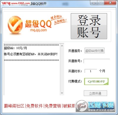 小编发现好友中不少都开了超级qq加速,小编也像弄个,但是不怎么想花钱,巅峰阁超级QQ秒开可以帮助大家免费秒刷QQ会员的软件!用户下载巅峰阁超级QQ秒开软件后只需登录账号,点击立即开通即可~!