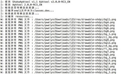 这里的<dir>就是刚才你反编译时输入的<dir>(如C:\MusicPlayer),输入这行命令后,如果一切正常,你会发现C:\MusicPlayer内多了2个文件夹build和dist,其中分别存储着编译过程中逐个编译的文件以及最终打包的apk文件。