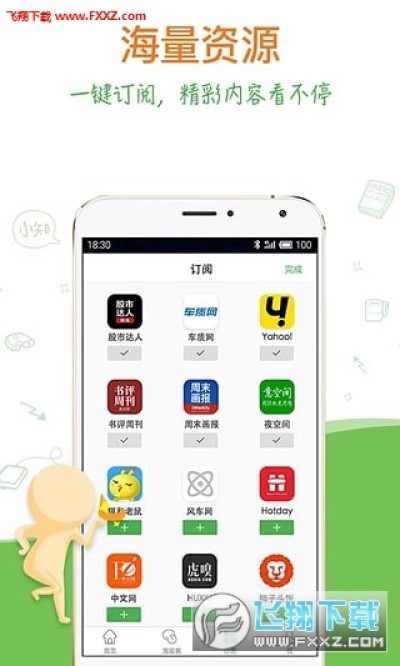 新闻、财经、科技、体育、汽车、时尚、娱乐、游戏、美图等近20个大分类,10万个优质内容源,随需定制。