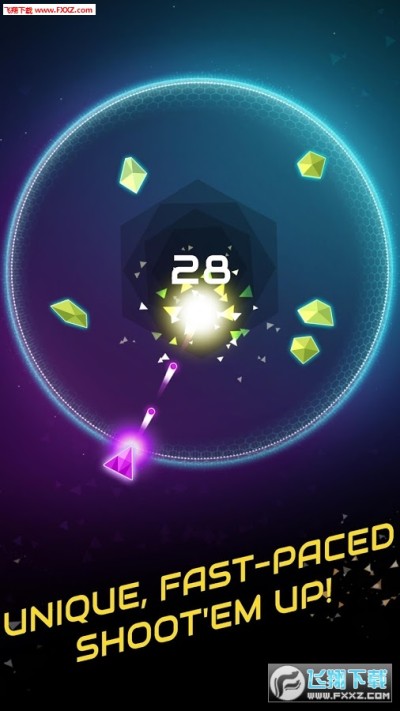 玩法很另类,玩家将在环形的轨道上防御核心不被敌人破坏,四面八方随机出现的敌人将对你的操作有一定的考验。