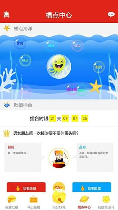 爱吐槽app是一款吐槽社区,不论你遇到什么糟心人、糟心事都可以在这里分享出来,完全无责任吐槽,还能赢积分赚钱,欢迎下载使用。