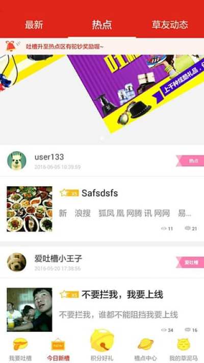 心里有什么想法,来这里和草粉们一起分享!这里有最HOT的槽点社区,每个人都可以轻松找到“话筒”,大胆展示自己的观点。这里有最IN的礼品馈赠,每天都可以纵情吐槽,轻松获得积分奖励,换取心仪商品!