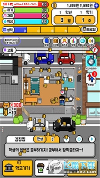 养成像素汉化版是一款像素风格的养成经营类游戏,游戏很大程度上反映了韩国的大学生活,玩家在养成像素安卓版游戏中将和主角一起度过四年的大学生活,你可以通过诸多选择增强自己的能力,选择美好的未来。不同的课程决定你的能力,你还可以通过做兼职赚取金钱,也可以通过各类任务达成成就,获得超级奖学金,更可以通过购买衣服和头发创建全新的角色。此外,游戏也拥有上百个可供收集的特色物品,满足你收集的欲望!