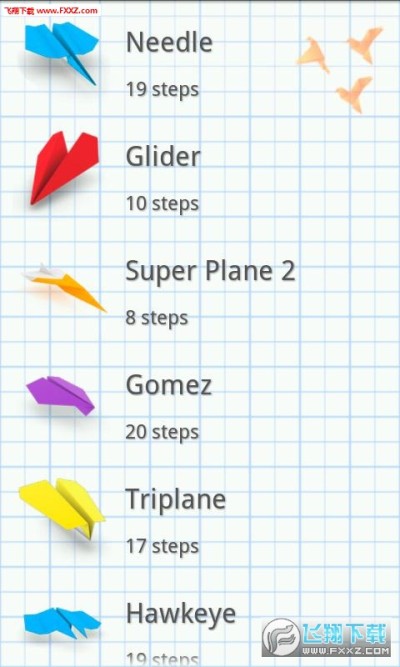 叠飞机(Paper Planes)是Android平台一款很简单的休闲娱乐游戏。这个游戏专门教你如何叠纸飞机,以简单的3D画面的形式,一步一步教授。一张纸,一飞机,果真不错。目前共收录了七架飞机的叠法,如果你不会的话,快来学一学吧。