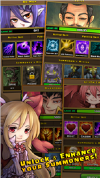 通过点击屏幕中的圆形区域,玩家可以指挥召唤师召唤出各种各样的作战部队。游戏中的召唤师数量多达45位,而召唤物的数量则更多,他们都拥有着各自的攻击属性以及特点,合理的组合之下会产生出很奇妙、很强力的套路。