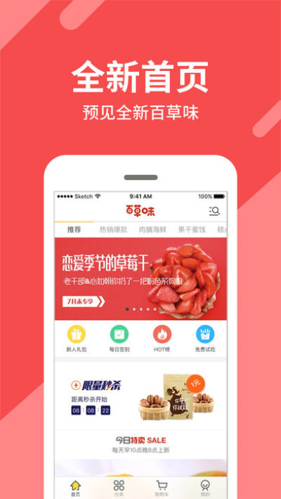 在地铁、在公交、在厕所、在床上,无论你在哪里,有百草味APP,随时随地,极速尝鲜,美味不再错过!