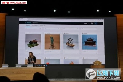 此外这些创建的3D对象能够非常轻松的嵌入到Office等软件中,在发布会的演示环节中,产品经理Heather Alekson女士演示在powerpoint中插入“新建3D模型”选项。用户可以访问3D社区https://remix3d.com/,寻找合适的3D素材然后进行修改和定制。