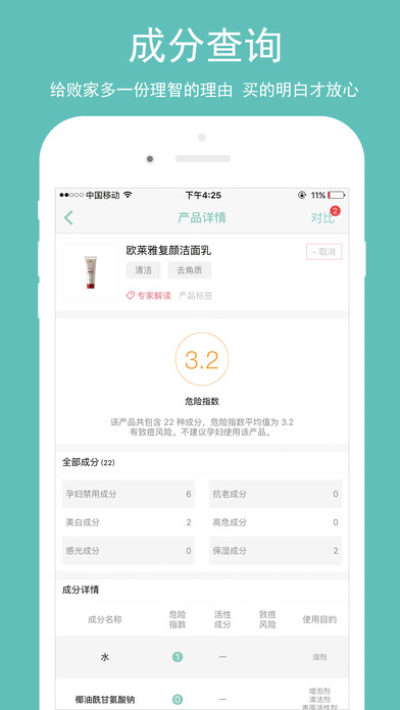 2.开放产品成份库给买买买增加一个理智的选择。