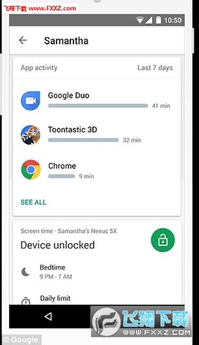 该APP能够为家长提供孩子手机每周、每月的使用报告,还可以设定计时器,限制孩子使用手机的时间。父母也有权远程锁定手机,并使用GPS定位,以查看孩子所处的位置。Family Link同样能让父母提前阻止孩子从应用商店下载不适合儿童的APP,在孩子玩耍、学习、睡眠时远程锁定孩子的设备。