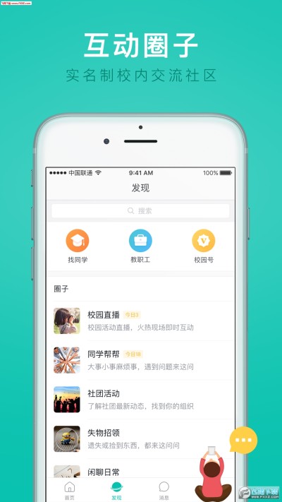 全校同学共同参与的实名制校内交流社区,支持图文、视频、外部链接分享学习生活,谈天说地结识好友,问题求助失物招领——只属于我们学校的“同学圈”