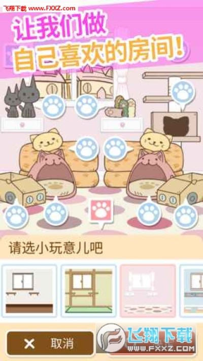 《猫毛》采用极其简单的画面风格,背景没有什么特别的地方,玩家也可以通过收集猫毛来制作小部件装饰房间,猫咪的种类也不都是现实中常见常听的猫种,基本上都是圆头圆脑的可爱造型。总体画面很平庸,没有特别差的地方也没有特别出众的地方。