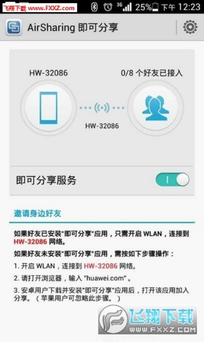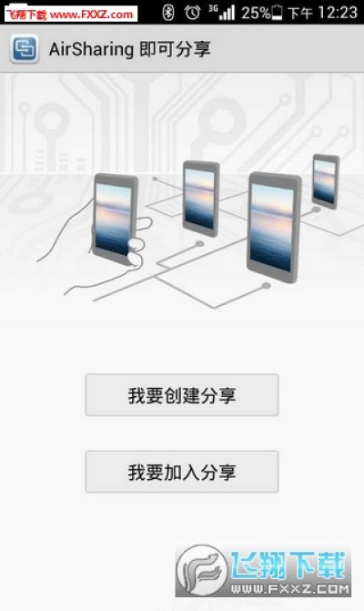 2.你下载即可分享这个软件,然后用其中一个终端建立主机,点我要创建分享。