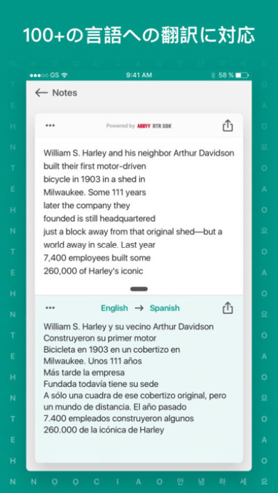 • 聆听已识别的文本,或将文本翻译成超过60种语言!