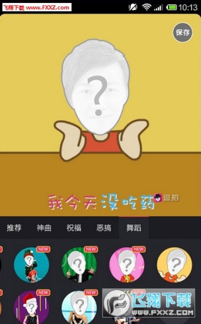 逗拍APP中分别有 “恶搞”、“模板”两种模式让用户来玩,不论是拍照还是制成大头贴,APP中本地自带的48款表情让你玩个够。同时,还有更多表情不断更新,用户可以不断更新。软件开发商会根据网络热点和最新的人气动漫、电视作品来制作符合用户喜好的作品,给予使用者源源不断的惊喜和快乐。