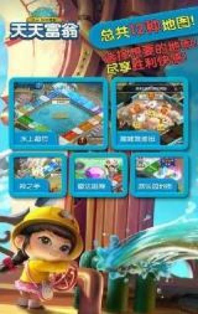 腾讯独代首款休闲桌游,韩国国民手游《天天富翁》正式亮相腾讯移动游戏平台。游戏承袭了传统“大富翁”特色,以Q版的画风、丰富的系统、逗趣的游戏性以及独特新颖的卡牌玩法来贯穿整套游戏。游戏的玩法和经典的大富翁等桌面游戏类似,玩家需要掷骰子来决定你的棋子角色前进的步数,走到不同的格子会有不同的事件发生,比如购买建造自己的建筑来招租;当游戏中的一方率先输掉了所有金钱即会判定该玩家输掉本局游戏。
