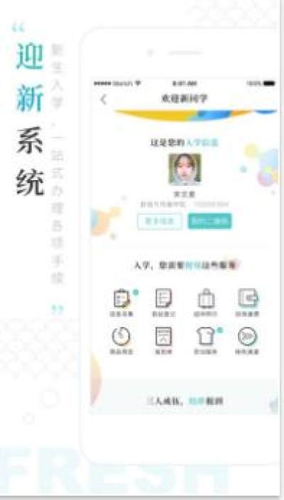 进入后,点击底部 服务 按钮,选择 我的迎新 应用