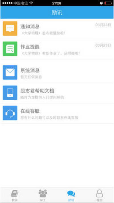 励志君学生版是一款学校管理软件,该软件为高校师生提供各类工作管理服务,可以提交作业、查看答案、手机签到、点名、批改作业等,帮你老师更好的管理学生,学生版是专门为学生准备的,可以快速的响应老师的要求,需要的朋友可以下载使用。