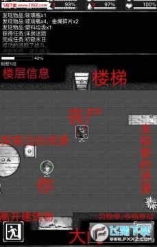 资源中探索到的物品依家具不同种类也不同,例如饮水机中能找到水类,机床里大概率找到金属类等。右下角切换单/多格移动即切换“点一个方向走一步”和“点一个位置男主自动寻路”。左下角离开可以在建筑物中的任何位置使用,直接走向楼梯或大门。