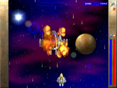 这款打飞机游戏从某种意义上来算是比较简单的一个游戏,因为他右方的血条会慢慢的回满,也就是说你只要不被一直的打,理论上一条命是可以用很长时间的。在这个经典的时空漩涡里,属于地球联邦的防御中心的计算机的主要系统被不知名的坏人占领。那些罪犯几乎控制了整个防御系统。玩家必须用他的方式通过与成群的敌人战斗来夺回被占领的计算机。游戏采用2D背景画面,混合了绚丽的3D爆炸射击等多种效果。在深邃的宇宙空间或充满危险的星球上飞行,各式各样的飞行器样式丰富,战斗场面宏大壮观。