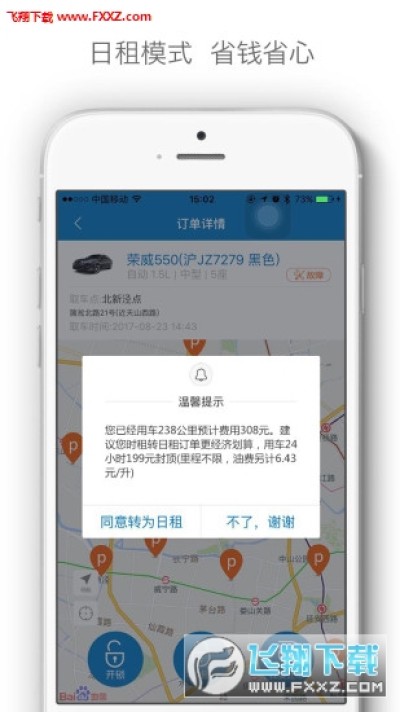 APP一键开锁,24小时随取随用,一切就像使用自己的私家车一样得心应手,用车完毕后在指定区域内任意停车,不必再为还车烦恼。