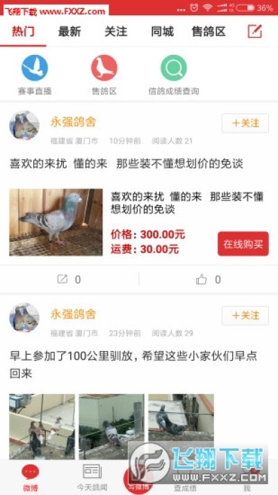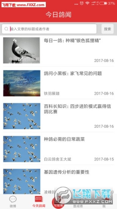 搜鸽天下(信鸽成绩查询)是全国30万鸽友交流互动App,集信鸽交易、微博论坛、赛鸽资讯、信鸽成绩查询、信鸽拍卖、鸽药商城于一体的鸽友互动交流App!