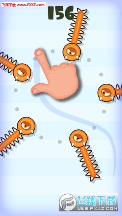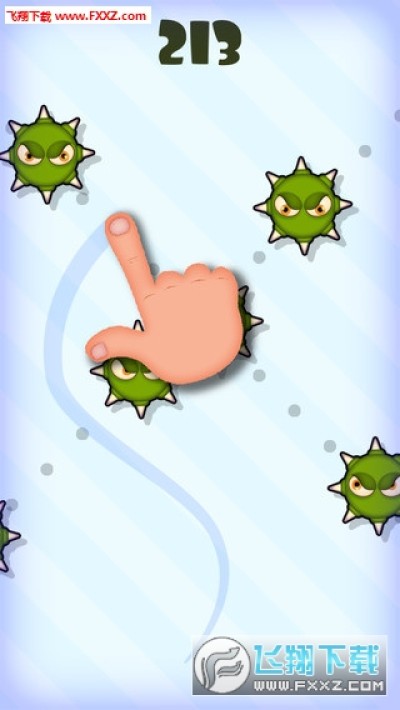 3.场景中的小怪物出现的频率与密度也会不断的提高,而玩家手指所处的位置会出现一个虚拟的小手。