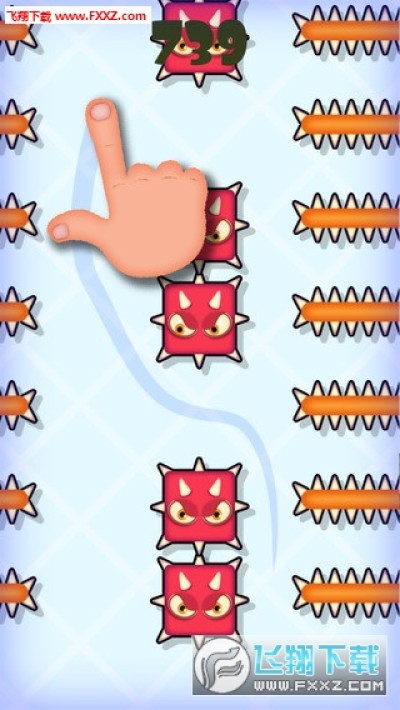 1.玩家只需要将手指按在屏幕上,顺着屏幕向前行进,同时避开画面中出现的各种满身长刺的小怪物。