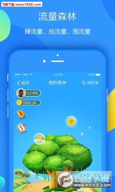 福建移动用户的流量增值乐园。流量森林根据用户使用的流量以一定比例生成流量币反馈给用户,同时还融入偷金币、道具商城,金币兑换等社交玩法,让用户轻松玩赚流量。