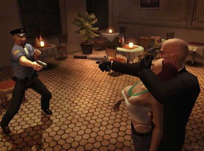 此外,HBM还新增加了一个“胁持系统”,“代号47”可以一只手挟持着NPC,另一只手则拿着手枪,在此状态下,其他NPC不会轻举妄动,你可以当这个NPC是挡箭牌,可以威胁他说出重要的情报。为了配合 “胁持系统”的使用,游戏允许“代号47”将枪隐藏在身后,这样方便玩家挟持NPC。当你挟持着NPC时,还可以实现其他动作,例如将NPC挟持到其他地方,或者用枪将他击晕,而且挟持NPC并非一定要使用手枪,你还可以使用麻醉针或其他锋利的武器。