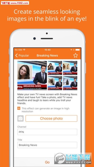 打开软件后,选择一张图片模版,软件内置上百张图片模版, 选择自己喜欢的模版, 点击choose photo, 选择你需要替换的照片, 稍等片刻,一张整合得非常完美的照片就出来了。