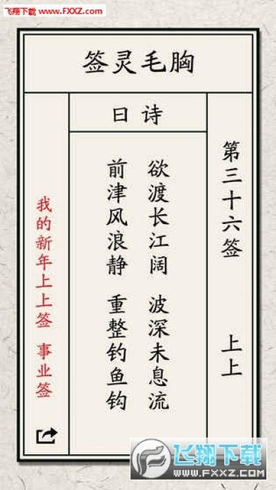 我的新年上上签游戏是一款全新的趣味玄学手游,主要就是一款休闲小游戏,上面充满了祝福的寄语,适合介绍给朋友用来祝福家人适合玩玩,十分契合过年的氛围,喜欢的小伙伴赶紧来下载这款我的新年上上签游戏吧~