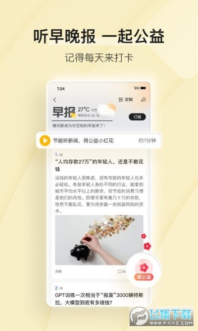 2.腾讯新闻畅听版是腾讯企业全新发布的一款根据深度学习和优化算法的互动式新闻商品,30s短声频高效率讲解新闻热点,7x24钟头全天为您产生暖心的资讯服务。