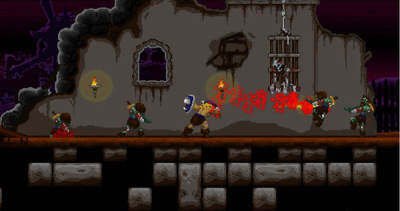这是一款像素级别的ACT横版过关小游戏,由Crazy Viking Studios 公司制作,Adult Swim Games 公司发行。这款游戏的宣言是“向街机游戏的黄金时代致敬,所以我们看到的满满都是16位游戏的影子。对这种复古游戏有特别情节的同学不要错过哟。