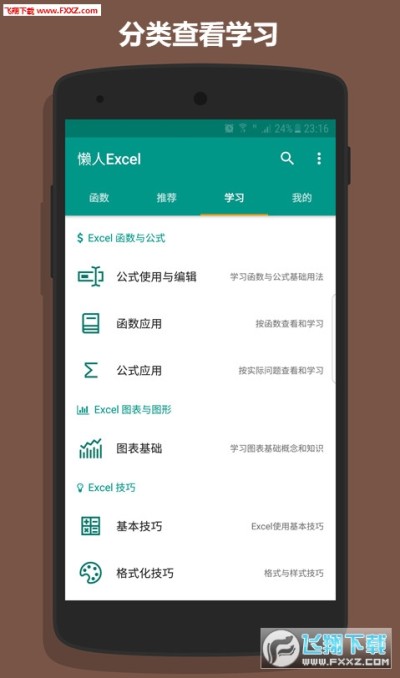 懒人Excel是一款为安卓用户提供excel辅助的软件,为用户提供丰富的学习课程,多功能的函数介绍,清晰的图表,便携的工具,让您轻松掌握excel的用法,不断提供办公效率.