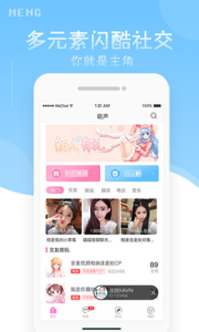 萌声软件是一款交友平台,不过这款软件是利用声音来交友的手机app,下载萌声app可以直接通过你发出的声音来教朋友哦,软件中有各种各样不一样的板块,用户可以根据自己的兴趣爱好来选择,这里也算二次元的交友平台吧!