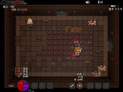 游戏中有血量、魔法、武器、护甲等。每个房间杀完所有怪掉落一把钥匙,可以开启邻近的门,杀怪会随机掉落装备。升级会出现三种选择,分别是攻击、暴击、击晕。有各种怪物,还有BOSS战。