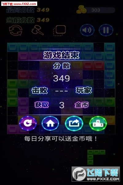 4、每成功放置一个方块组合,可以加上该方块组合分值(方块组合分值=该方块组合的方块数目)。