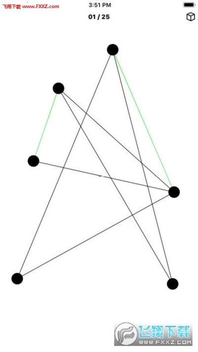 游戏中至少有两个点,每个点与其余至少两点以直线相连,玩家需利用推理力,创造力,空间力来移动节点,使所有连线均不相交!