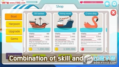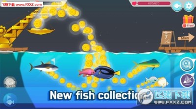 2、游戏里面我们钓到的鱼都是可以在游戏结束的时候卖出去换成金币的,我们可以用这些金币去买船,贵的船性能会好很多;
