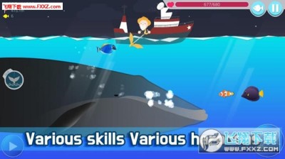 1.用旋转矛,捕捉很多鱼来赚取金钱。