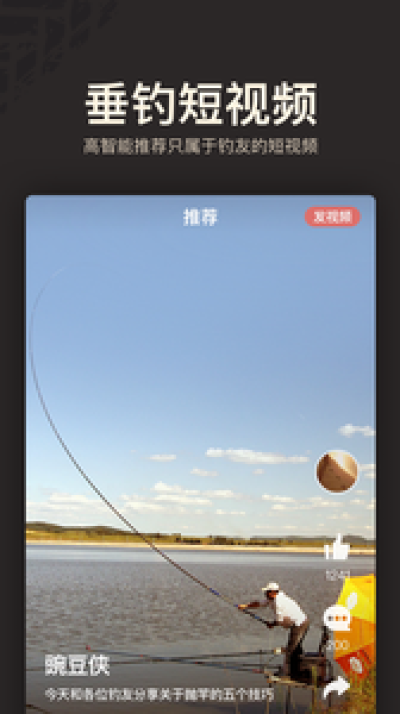 垂钓短视频则是承载了生动、精彩、神秘的内容,我们将你喜欢的、关注的、看了又看的地视频进行智能推荐,将内容推荐到你的手中。你也可以发布精彩的短视频并进行分享,让更多钓友看到它。