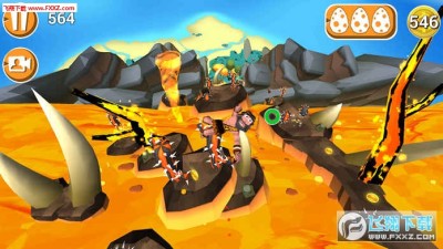 在寻找恐龙蛋的时候,你惊怒到了强大的火山,并被甩到了山的侧面。你必须“翻滚”着下山,避开障碍物和危险,不能被岩浆追上。