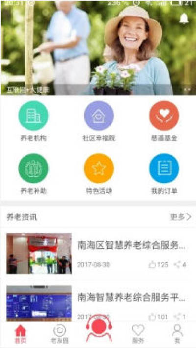 南海健康app是一款为老人打造的智慧养老服务,这款软件利用了互联网技术为用户提供非常全面的生活服务,主要是针对老人的日常生活的,在南海健康app上用户可以远距离了解父母的身体情况,父母出现紧急情况的时候能直接通过南海健康app呼救,非常方便!