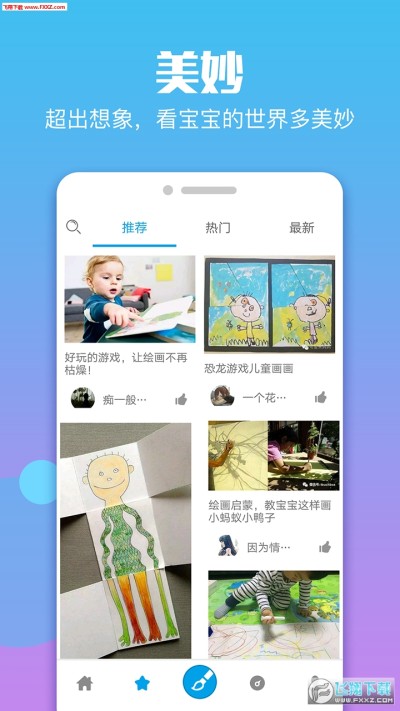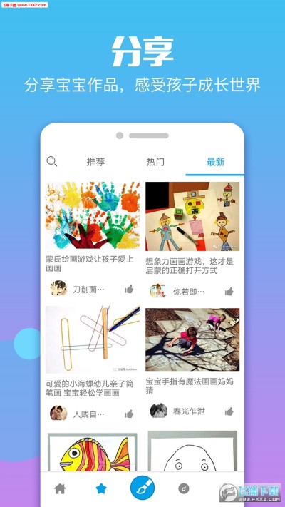 宝宝游戏app是一款专门为宝宝推出的绘画软件,它满足了孩子对绘画的好奇心,也满足了对颜色以及性状的好奇,在这款软件中,孩子可以凭借自己的想象力进行绘画,并且还可以进行命名,为宝宝推出一个个人展,喜欢的朋友赶紧下载吧。