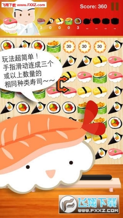 基本玩法很简单,就是大家都熟悉的宝石三消游戏,这次由寿司们领衔主演,美味又复杂的造型,增加游戏难度,让热爱三消游戏的你有新的选择。 可连续消除的设计让你可以训练眼力与手指如何在短时间内同步反应,体验连段的快感。 为了增加娱乐性,并设计了不同的效果道具、挑战模式与多种结局!